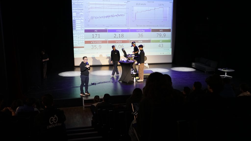 En fin de matinée, les participants ont assisté à un test VO2 max sur tapis roulant réalisé en direct. Encadré et commenté par les équipes d’Enduraw, ce test a permis d’expliquer concrètement comment les scientifiques mesurent la capacité aérobie d’un sportif.